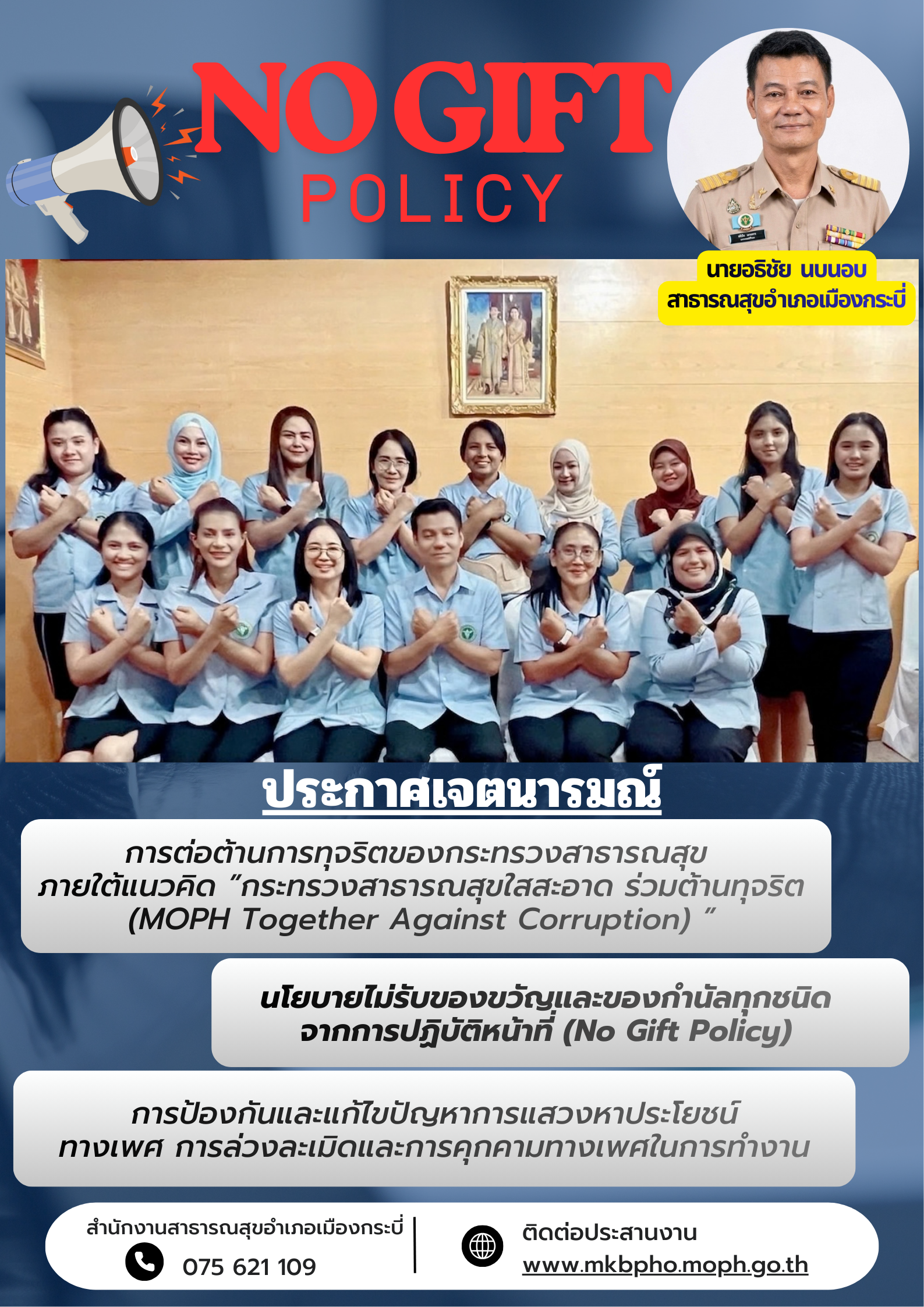 , เครือข่ายเมืองกระบี่, สำนักงานสาธารณสุขอำเภอ, อำเภอเมืองกระบี่, จังหวัดกระบี่"> มีกิจกรรมประกาศเจตนารมณ์ตามข้อ 1.1 ถึงข้อ 1.3 ของหน่วยงาน ต่อสาธารณชน ดำเนินกิจกรรมประกาศในวันเดียวกัน (ระยะเวลาตั้งแต่เดือนตุลาคม 2568 ถึงเดือนมีนาคม 2569)